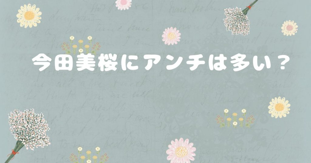 最近ではTVで今田美桜さんの活躍を見ることが多いですね。 そんな中、今田美桜さんのことを嫌いと感じている人もいるようですね。 アンチの方は今田さんのどこが嫌いなのでしょうか? 今回は今田美桜さんのアンチの人が嫌いと感じているポイントについて調... -
