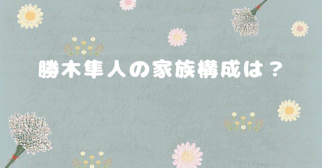 勝木隼人の嫁や子供など家族構成を調査!美人妻の支えが凄かった!