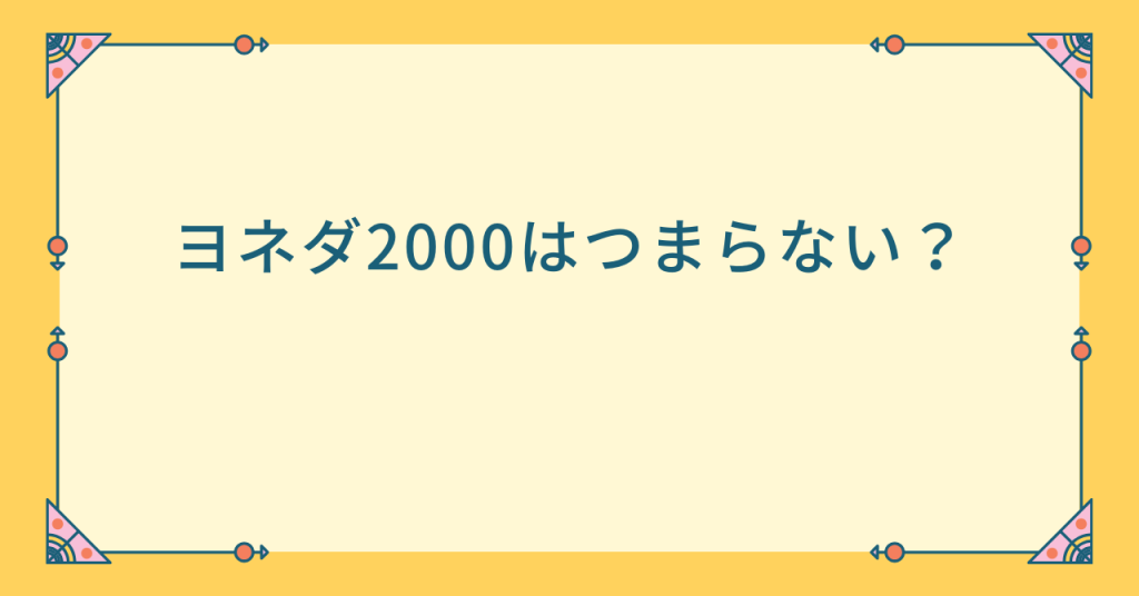 ヨネダ2000がつまらないと言われる理由は?笑い所が難しいとの声も
