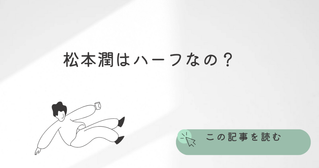 俳優などとして活躍をしている松本潤さんに注目が集まっておりますね。 松本潤さんはハーフでは?と思う方もいるようですが実際はどうなのでしょうか? 今回は松本潤さんがハーフなのかについて調査をしていこうと思います! 最後までお願いします(^^♪ 松... -