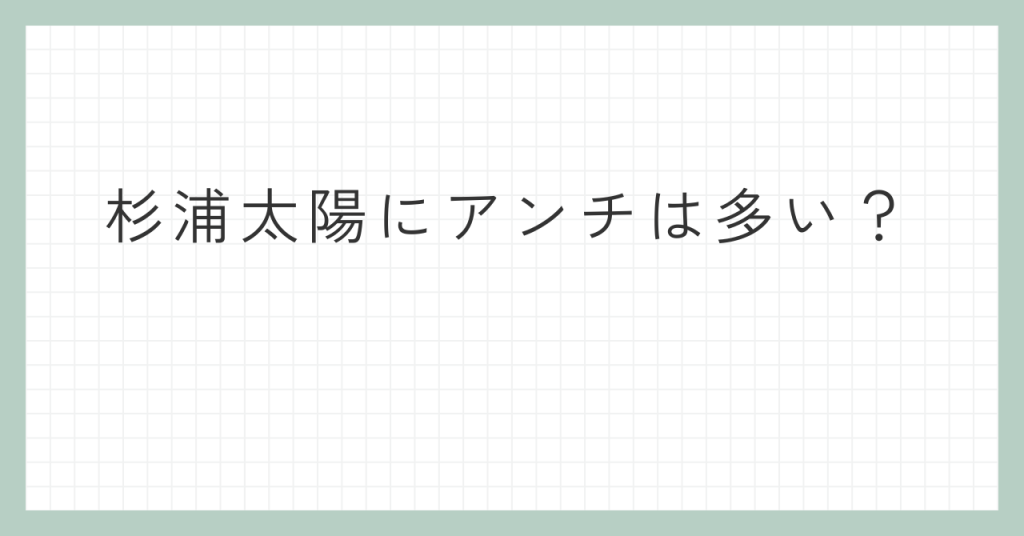 杉浦太陽のアンチは多い?なぜ嫌われているのか理由を徹底調査!