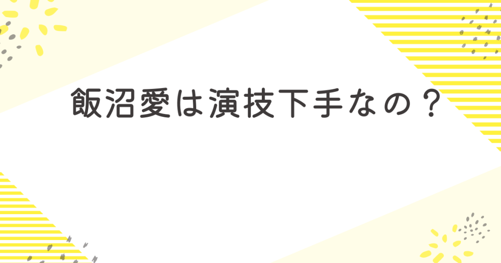 女優の飯沼愛さんの演技力に注目が集まっておりますね。 いろいろなドラマに出演している飯沼さんですが視聴者の中には飯沼さんの演技が下手と感じる方もいるようですね。 飯沼さんの演技力に対する評価はどうなのでしょうか? 今回はそんな飯沼さんの演技... -