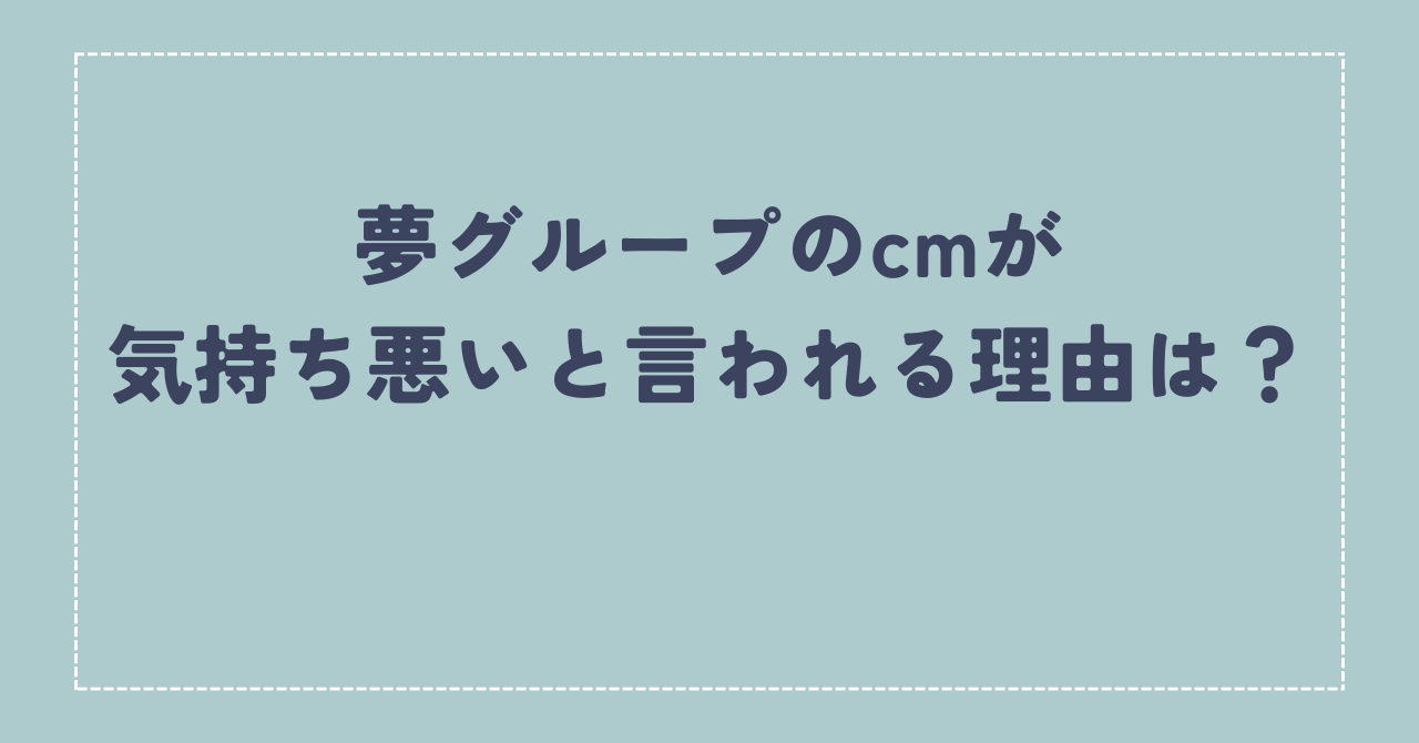 今回は夢グループのcmが気持ち悪いと言われる理由についてまとめていきました。