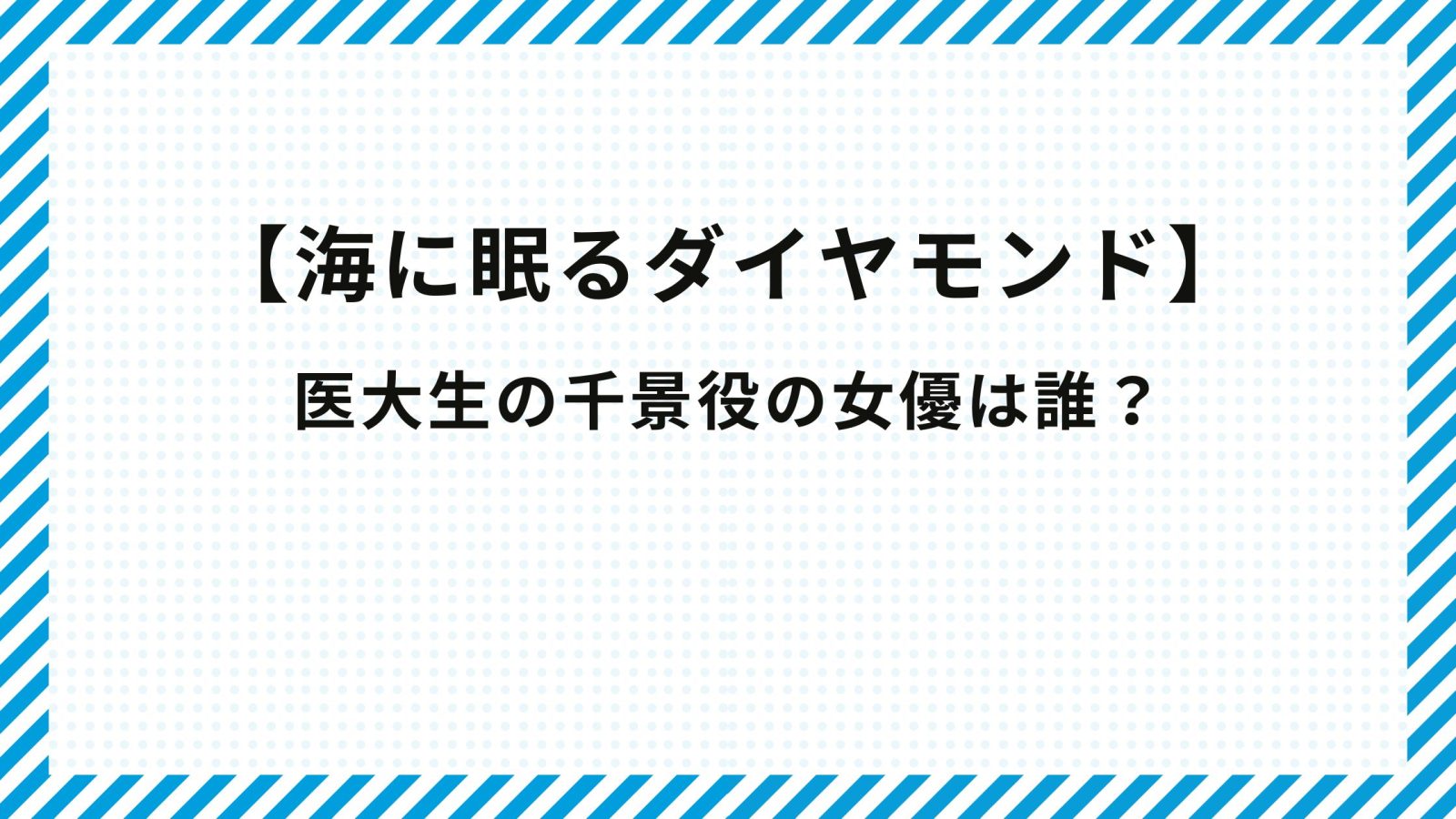 2024年10月から放送開始されている日曜劇場の『海に眠るダイヤモンド』が話題になっておりますね!