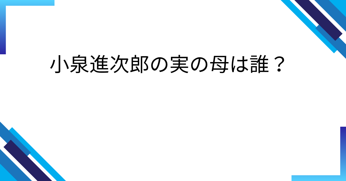 小泉進次郎さんの実の母は、名家の出身であり、若くして政治家・小泉純一郎さんと結婚した宮本佳代子さんです。