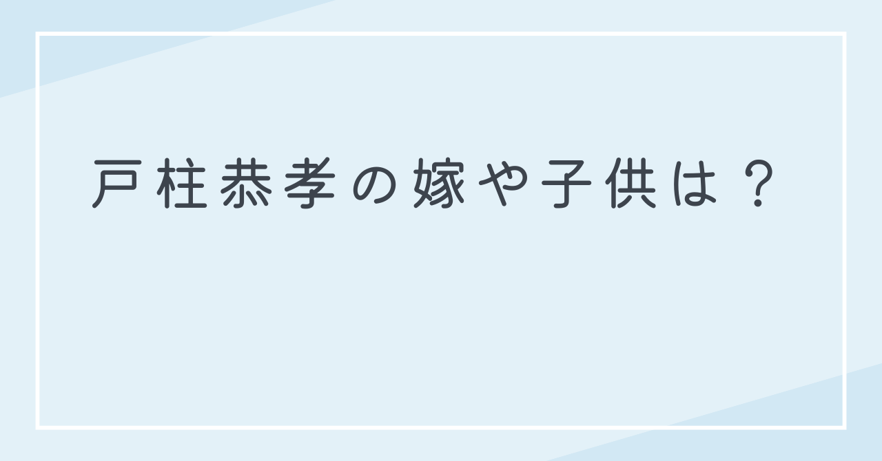 戸柱恭孝の結婚相手(嫁)はどんな人?